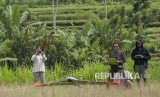REPUBLIKA.CO.ID, KARANGASEM -- Anggota tim drone Pusat Vulkanologi dan Mitigasi Bencana Geologi (PVMBG) menerbangkan pesawat jenis AI450ER untuk memantau aktifitas Gunung Agung yang masih berstatus awas di Desa Selat, Karangasem, Bali, Selasa (23/1).