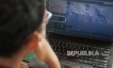 Anggota tim drone Pusat Vulkanologi dan Mitigasi Bencana Geologi (PVMBG) mengontrol pergerakan pesawat jenis AI450ER dari komputer saat memantau aktifitas Gunung Agung yang masih berstatus awas di Desa Selat, Karangasem, Bali, Selasa (23/1). (FOTO : Antara/Nyoman Budhiana)
