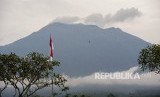 Asap keluar dari kawah Gunung Agung yang masih berstatus awas di Pos Pengamatan Gunung Api Agung, Desa Rendang, Karangasem, Bali, Selasa (23/1). (FOTO : Antara/Nyoman Budhiana)