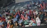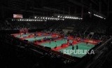 Penonton menyaksikan laga Daihatsu Indonesia Master 2018 setelah seremoni peresmian renovasi Istana Olahraga (Istora) di kawasan Gelora Bung Karno (GBK) Jakarta, sore ini, Selasa (23/1). (FOTO : Republika/Edwin Dwi Putranto)