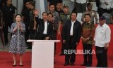 Presiden Joko Widodo berfoto bersama dengan para pemain bulutangkis legendaris Indonesia saat meresmikan renovasi Istana Olahraga (Istora) di kawasan Gelora Bung Karno (GBK) Jakarta, sore ini, Selasa (23/1). (FOTO : Republika/Edwin Dwi Putranto)