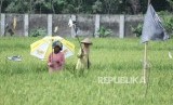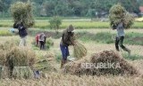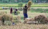 REPUBLIKA.CO.ID, BANDUNG -- Sejumlah buruh tani memisahkan bulir padi sehabis panen di sebuah areal pesawahan di daerah Cinambo, Kota Bandung, Rabu (24/1).
