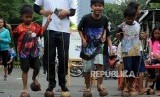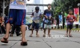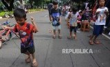 REPUBLIKA.CO.ID, JAKARTA -- Anak-anak bermain aneka permainan tradisional saat car free day di Jalan Jenderal Sudirman, Setiabudi, Jakarta, Ahad (28/1).