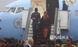Presiden Jokowi dan Ibu Iriana tiba di Bandara Internasional Hamid Karzai, Afganistan, Senin (29/1). (FOTO : AP/Massoud Hossaini)