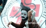 Peserta aksi memperlihatkan simbolis topeng monyet saat aksi Air Mata Topeng Monyet yang digelar Jakarta Animal Aid Network (JAAN) dalam rangka Peringatan Hari Primata Nasional, di depan Gedung Sate, Kota Bandung, Selasa (30/1). (FOTO : Republika/Edi Yusuf)