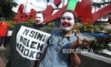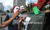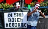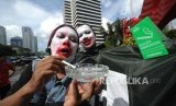 REPUBLIKA.CO.ID, JAKARTA -- Anggota Komunitas Kretek melakukan aksi teatrikal di kawasan Sarinah, Jakarta, Selasa (30/1).