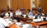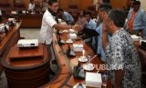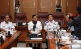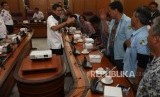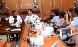 Wakil Gubernur DKI Jakarta Sandiaga Uno bersama Kepala Dinas Perhubungan DKI Jakarta Andri Yansyah saat menemui perwakilan sopir angkot jurusan Tanah Abang di Balai Kota, Jakarta, Rabu (31/1). (FOTO : Republika/Mahmud Muhyidin)