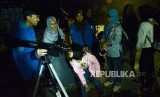 Pengunjung antre untuk mengamati fenomena gerhana bulan total super blue blood moon bersama Institut Teknologi Bandung (ITB), di Gedung Sasana Budaya Ganesa (Sabuga) di Jalan Tamansari, Kota Bandung, Rabu (31/1). (FOTO : Republika/Edi Yusuf)