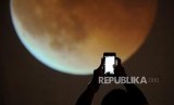 Warga memotret fase gerhana bulan total di kawasan Taman Ismail Marzuki(TIM), Cikini, Jakarta, Rabu (31/1). (FOTO : Republika/Iman Firmansyah)