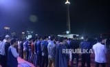 Sejumlah warga menunaikan Salat Sunnah Gerhana Bulan (Khusuf) di Lapangan Monas,Jakarta, Rabu (31/1). (FOTO : Republika/Prayogi)