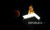 Foto Multiexpose Detik-detik terjadi fenomena Super Blue Blood Moon terlihat di langit Kawasan Monas, Jakarta, Rabu (31/1). (FOTO : Republika/Prayogi)