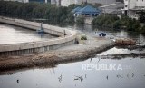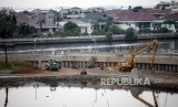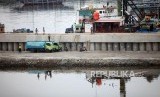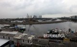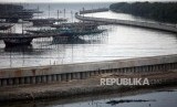 REPUBLIKA.CO.ID,JAKARTA -- Suasana pembangunan proyek tanggul laut yang masih dalam penyelesaian di Kawasan Muara Baru, Kamis (1/2).