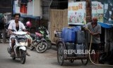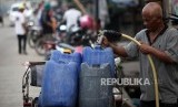 REPUBLIKA.CO.ID, JAKARTA -- Warga mengisi air bersih ke dalam jerigen di Kawasan Muara Angke, Jakarta, Kamis (1/2).