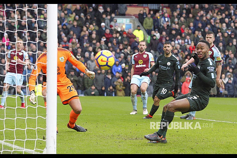 Ekspresi Raheem Sterling saat gagal memanfaatkan kesempatan mencetak gol ke gawang Burnley di Turf Moor, Burnley, Sabtu (3/2). (FOTO : Richard Sellers/AP)
