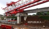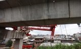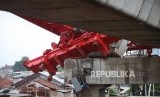 Suasana kondisi crane proyek pembangunan kontruksi jalur kereta ”double-dobel track (DDT)" yang roboh di Matraman, Jakarta, Ahad (4/2). (FOTO : Republika/Mahmud Muhyidin)