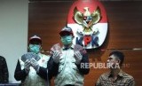 Wakil ketua KPK Laode M Syarif (kanan) menunjukan barang bukti yang didapat saat melakukan OTT dalam konfrensi pers di Kantor KPK, Jakarta, Ahad (4/2). (FOTO : Republika/Iman Firmansyah)