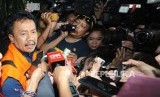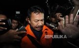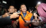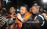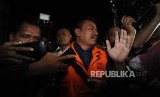 REPUBLIKA.CO.ID, JAKARTA -- Berjalan. Bupati Jombang Nyono Suharli Wihandoko memakai rompi orange berjalan usai dilakukan pemeriksaan 1x24 jam di kantor KPK, Jakarta, Ahad (4/2).