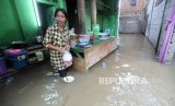 Sejumlah warga beraktivitas saat banjir yang merendam rumahnya akibat luapan Kali Ciliwung di Kebon Pala, Kampung Melayu, Jakarta, Senin (5/2). (FOTO : Republika/Mahmud Muhyidin)