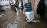 REPUBLIKA.CO.ID, JAKARTA -- Warga menerobos banjir yang merendam rumahnya akibat luapan Kali Ciliwung di Kebon Pala, Kampung Melayu, Jakarta, Senin (5/2).