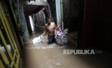 Warga menerobos banjir yang merendam rumahnya akibat luapan Kali Ciliwung di Kebon Pala, Kampung Melayu, Jakarta, Senin (5/2). (FOTO : Republika/Mahmud Muhyidin)