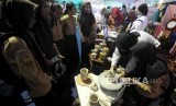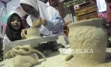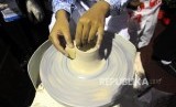 REPUBLIKA.CO.ID, DEPOK -- Pelajar mencoba membuat kerajinan keramik pada pameran Rembuk Nasional Pendidikan dan Kebudayaan (RNPK) di Pusdiklat Kemendikbud, Depok, Jawa Barat, Rabu (7/2).