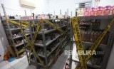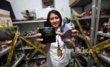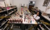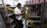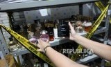 Petugas kepolisian memeriksa barang bukti parfum palsu saat rilis pengungkapan kasus produksi parfum palsu di Tamansari, Jakarta, Rabu (7/2). (FOTO : Republika/Mahmud Muhyidin)