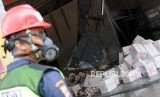 Petugas mengawasi proses pemusnahan produk suplemen kesehatan Viostin DS di PT. Prasadha Pamunah Limbah Industri, Nambo, Gunung Putri, Bogor, Jawa Barat, Kamis (8/2). (FOTO : Republika/Putra M. Akbar)