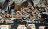 Sejumlah produk suplemen kesehatan Viostin DS dimusnahkan di PT. Prasadha Pamunah Limbah Industri, Nambo, Gunung Putri, Bogor, Jawa Barat, Kamis (8/2). (FOTO : Republika/Putra M. Akbar)