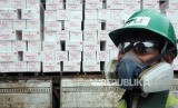 Pekerja menjaga produk suplemen kesehatan Viostin DS sebelum dimusnahkan di PT. Prasadha Pamunah Limbah Industri, Nambo, Gunung Putri, Bogor, Jawa Barat, Kamis (8/2). (FOTO : Republika/Putra M. Akbar)