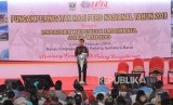 Presiden Republika Indonesia Ir Joko Widodo memberikan sambutan dalam acara puncak peringatan hari pers nasional 2018 di Danau Cimpago, Kota Padang, Provinsi Sumatra Barat, Jumat, (9/2). (FOTO : Republika/Iman Firmansyah)