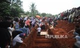REPUBLIKA.CO.ID, JAKARTA -- Proses pemakaman korban kecelakaan bus maut di Tangerang Selatan, Banten, Ahad (11/2).