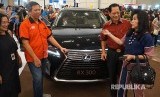 Presiden Direktur PT. Bank Central Asia Tbk (BCA) Jahja Setiaatmadja (kedua kanan) didampingi Ketua Panitia BCA Expoversary 2018 Petrus Karim (kedua Kiri) berbincang dengan seorang nasabah BCA di booth KKB BCA disela acara penutupan BCA Expoversary 2018 di Indonesia Convention Exebition, Tangerang, Banten, Minggu (11/2). Dalam ajang pameran produk perbankan BCA tersebut mampu mencatat transaksi mencapai Rp.1000 Milyar (FOTO : Muhammad Iqbal)