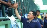 Presiden Inter Milan yang juga Komisaris PT PBB Erick Thohir bersalaman dengan fan Inter Milan pada acara peluncuran Akademi Persib yang merupakan partnership program bersama Inter Academy di Stadion Siliwangi, Kota Bandung, Selasa (13/2). (FOTO : Republika/Edi Yusuf)