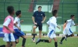 Legenda Inter Milan Javier Zanetti hadir sekaligus memberikan bimbingan langsung pada anak didik pada peluncuran Akademi Persib yang merupakan partnership program bersama Inter Academy di Stadion Siliwangi, Kota Bandung, Selasa (13/2). (FOTO : Republika/Edi Yusuf)