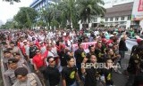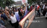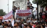 REPUBLIKA.CO.ID, JAKARTA -- Ratusan pengemudi taksi daring melakukan aksi unjuk rasa di depan Istana Negara, Jakarta, Rabu (14/2).