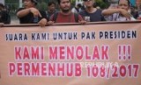 Pengemudi daring menuntut pemerintah mencabut Peraturan Menteri Perhubungan Nomor 108 Tahun 2017 (Permenhub 108) tentang Penyelenggaraan Angkutan Orang dengan Kendaraan Bermotor Umum Tidak dalam Trayek.