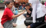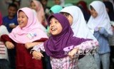 Peserta bermain ular tangga matematika saat mengikuti kegiatan Fun Science Di SD Muhammadiyah 5, Jalan Limau, Jakarta, Sabtu (17/2). (FOTO : Republika/Mahmud Muhyidin)