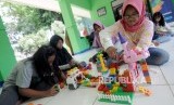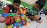 REPUBLIKA.CO.ID, JAKARTA -- Anak-anak bermain lego di Ruang Publik Terpadu Ramah Anak (RPTRA) Taman Sawo, Kebayoran Baru, Jakarta, Ahad (18/2).