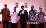 Plt Direktur Utama PT Bhanda Ghara Reksa (Persero), Mohammad Affan (kedua kanan) berfoto bersama (kiri-kanan) Deputi Bidang Usaha Konstruksi Sarana Prasarana Perhubungan (KSPP) Kementerian BUMN Ahmad Bambang, Komisaris BGR Lambonar O Silitonga, Komisaris Utama Cecep Sutiawan dan Direktur Operasional dan Pemasaran M Taufik Hidayat, seusai penyerahan salinan Surat Keputusan Menteri BUMN tentang penunjukan Plt Direktur Utama dan Pengangkatan Komisaris Independen BGR, di Jakarta, Senin (19/2). (FOTO : Antara)