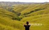Seorang pengunjung mengabadikan panorama Bukit Wairinding di Kabupaten Sumba Timur, NTT (19/2). Bukit Wairinding merupakan salah satu lokasi wisata alam yang mejadi destinasi bagi wisatawan domestik dan mancanegara. (FOTO : Kornelis Kaha/Antara)
