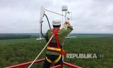 Tim Respon Cepat memantau kebakaran lahan dan hutan melakukan pemantauan melalui salah satu Green House Gas Monitoring Tower Senin (19/2). PT Riau Andalan Pulp & Paper mempunyai 3 GHS monitoring tower untuk mendukung upaya pemerintah mencegah kebakaran pada musim kemarau awal 2018. (FOTO : Dok RAPP)