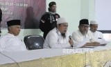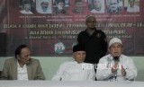 Ketua Dewan Penasihat Persaudaraan Alumni 212 Amien Rais bersama Sekjen Komisi Nasional Anti Pemurtadan Bernard Abdul Jabar (dari kiri) memaparkan penjelasan saat konferensi pers pada kegiatan Seminar Nasional Menghadapi Fenomena Pendzaliman Terhadap Para Ulama di Kantor Dewan Dakwah Islamiyah Indonesia, Jakarta, Selasa (20/2). (FOTO : Republika/Putra M. Akbar)