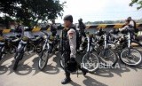 Personil Brimob melakukan penjagaan di Kawasan Bandara Soekarno-Hatta, Tangerang, Banten, Rabu (21/2). (FOTO : Republika/Mahmud Muhyidin)