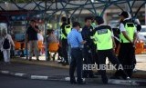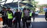 Petugas keamanan dan polisi melakukan penjagaan di Kawasan Bandara Soekarno-Hatta, Tangerang, Banten, Rabu (21/2). (FOTO : Republika/Mahmud Muhyidin)