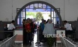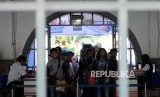 Penumpang melakukan pengecekan tiket sebelum menaiki rangkaian kereta Jakatingkir di Stasiun Pasar Senen, Jakarta, Ahad (25/2). (FOTO : Republika/Prayogi)