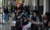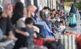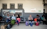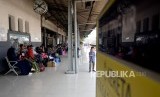 REPUBLIKA.CO.ID, JAKARTA -- Penumpang menunggu rangkaian kereta Jakatingkir di Stasiun Pasar Senen, Jakarta, Ahad (25/2).