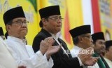 Istighosah Golkar. Wakil Ketua Dewan Kehormatan Akbar Tanjung Ketua Umum Partai Golong Karya Airlangga Hartarto, Ketua PBNU K.H Said Aqil (kiri ke kanan) menghadiri istighosah Partai Golkar di DPP Partai Golkar, Jakrta, Rabu (28/2). (FOTO : Republika/Iman Firmansyah)