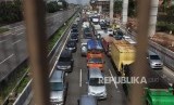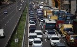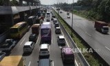 Antrean kendaraan saat melintas di ruas Tol Jakarta Cikampek, Bekasi, Jumat (2/3). (FOTO : Republika/Mahmud Muhyidin)