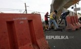 REPUBLIKA.CO.ID, JAKARTA -- Dinas Perhubungan DKI Jakarta menutup jalan perlintasan kereta api di Kawasan Cipinang Lontar, Jakarta, Senin (5/3).