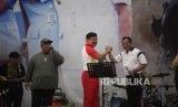 Panglima TNI Marsekal Hadi Tjahjanto (kiri) bersama Kapolri Jenderal Tito Karnavian (kanan) berjalan seusai bernyanyi di Markas Besar TNI, Cilangkap, Jakarta, Selasa (6/3). (FOTO : Republika/Mahmud Muhyidin)